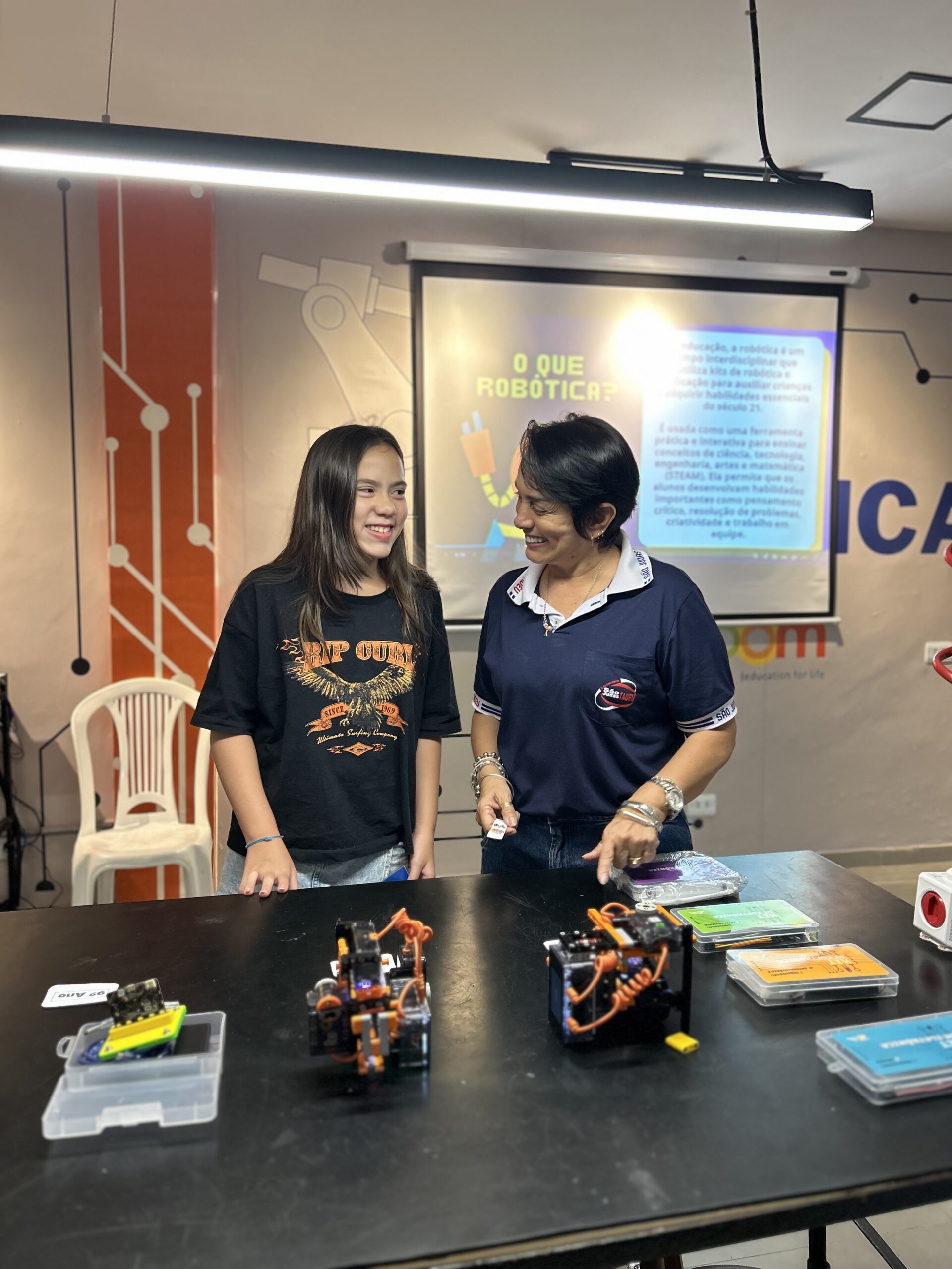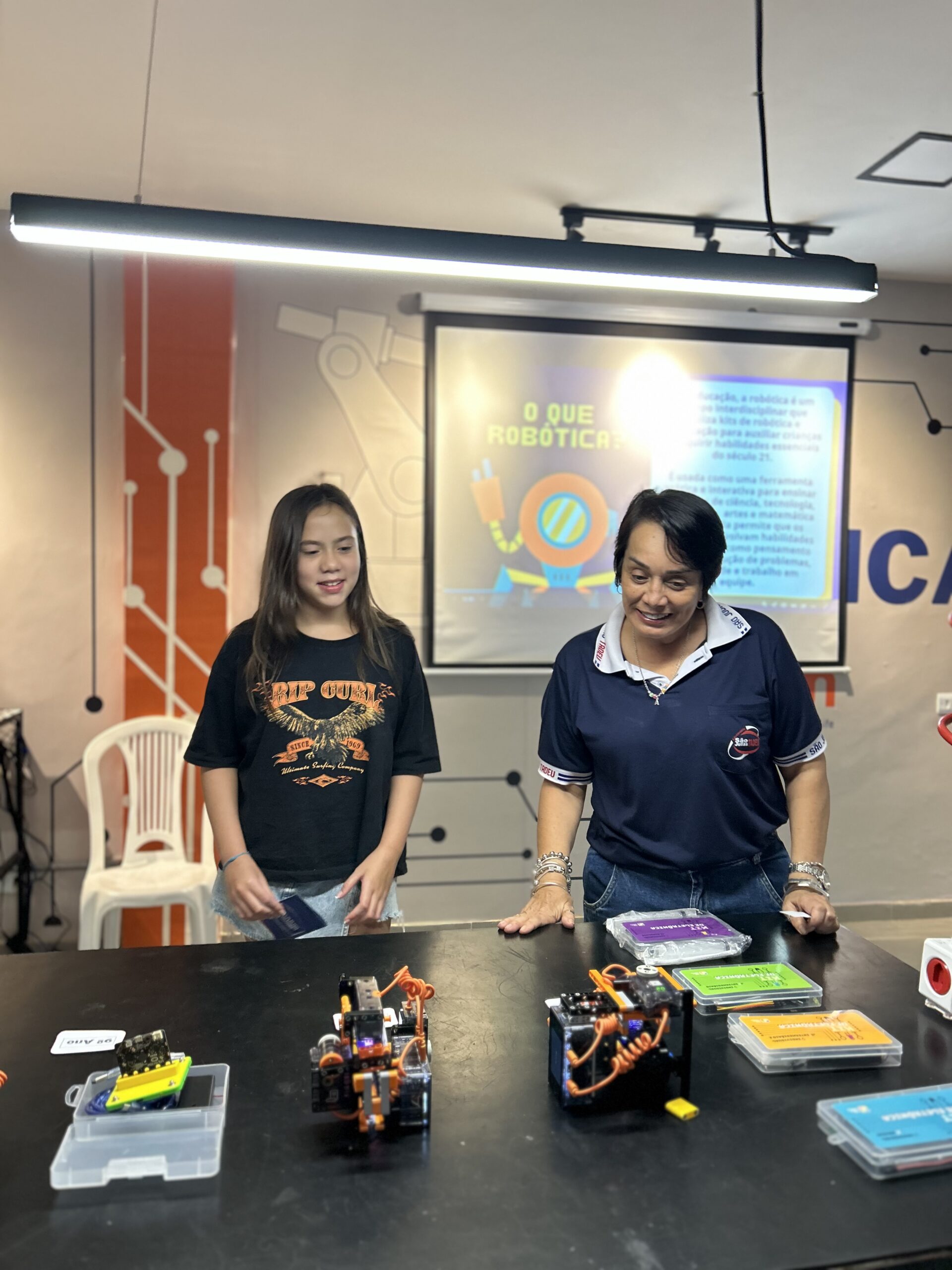 Em 2025, ela foi oficialmente integrada à proposta pedagógica, convidando nossos estudantes a mergulharem no universo da montagem, programação e cultura maker.